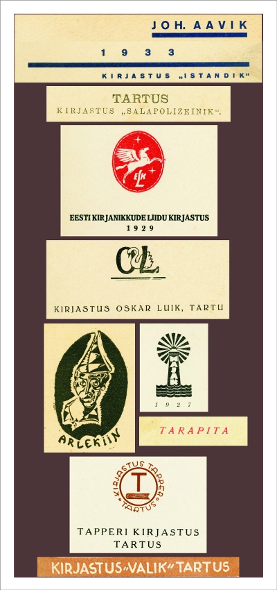 Siit leiate esimese Eesti Vabariigi ajal Tartus tegutsenud kirjastusi tutvustavate raamatunäituste sarja materjalid. Ülevaated ja nimestikud koostasid Elle ja Tiina Tarik.